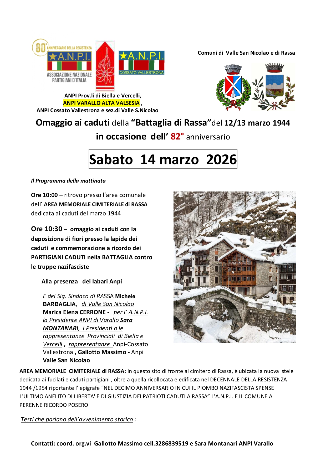 Commemorazione della Strage Fascista di Rassa – sabato 14 marzo.